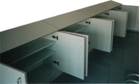 Tische und Sideboards für den Aufenthalts- und Seminarraum der Firma "Alphagen".